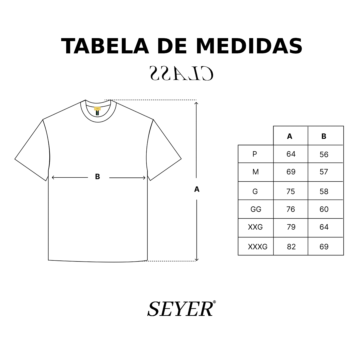 TABELA DE MEDIDAS EM CENTÍMETROS:
