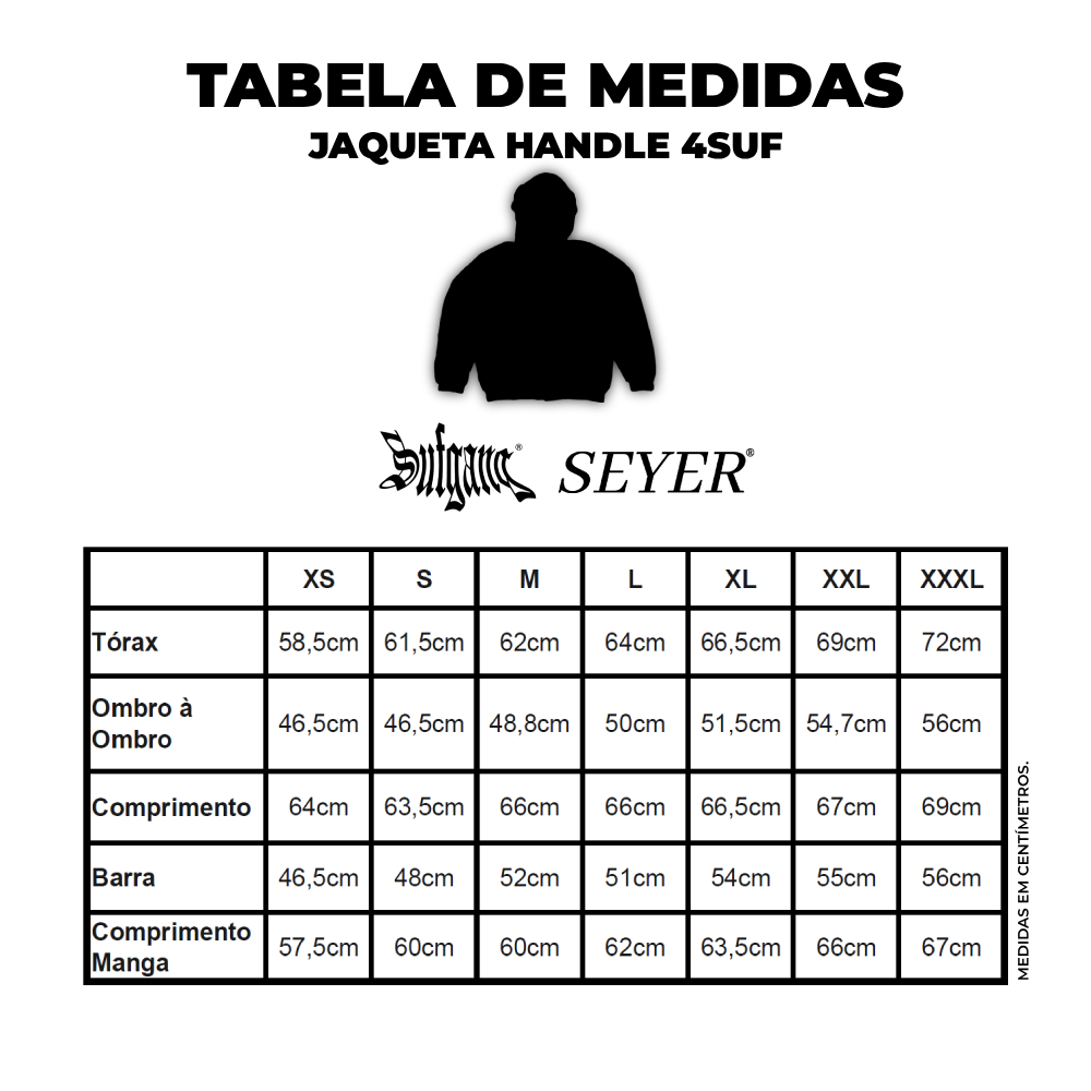 com fechamento em zíper selado, logo “4SUF” bordado no peito, elásticos com